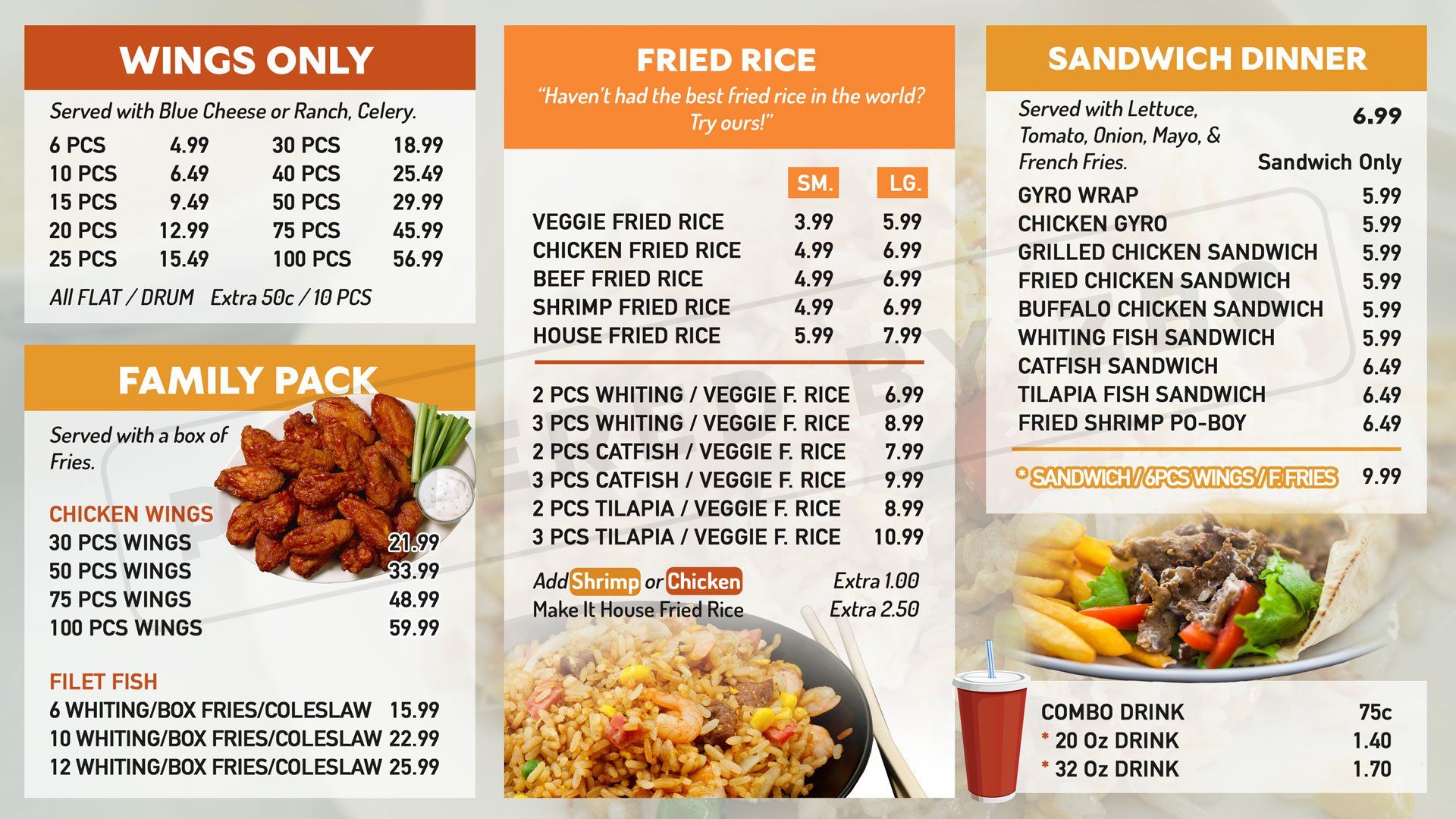 We have many other design services to compliment your business' branding and story. From TV Menus to Photography Services, we are a one stop shop for beautifying your business.